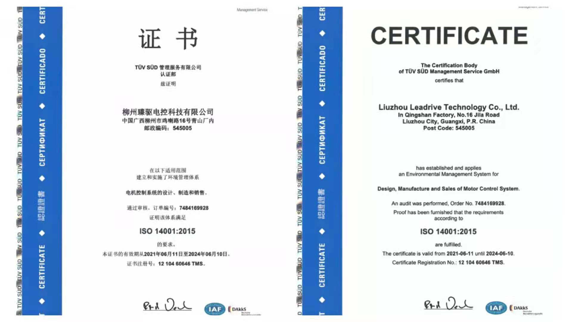 臻驅(qū)科技子公司獲得ISO 14001:2015環(huán)境管理體系認證