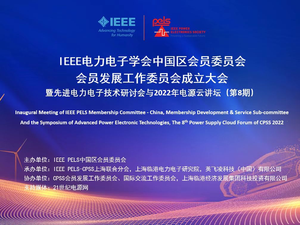 2022年9月18日,由上海臨港電力電子研究院承辦的IEEE電力電子學會中國區會員委員會,會員發展工作委員會成立大會,暨先進電力電子技術研討會與2022年電源云講壇(第8期)在上海臨港成功舉辦。