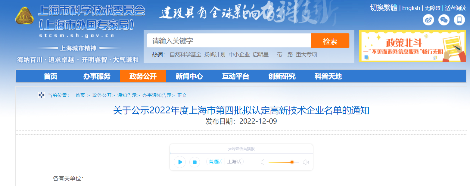 近日,根據科技部、財政部、國家稅務總局《高新技術企業認定管理辦法》(國科發火〔2016〕32號)、《高新技術企業認定管理工作指引》(國科發火〔2016〕195號)、《上海市高新技術企業認定管理實施辦法》(滬科合〔2021〕21號)的有關規定和審查,上海市科學技術委員會公布了2022年度上海市第四批擬認定高新技術企業名單,臻驅科技順利通過高新技術企業復核認定。