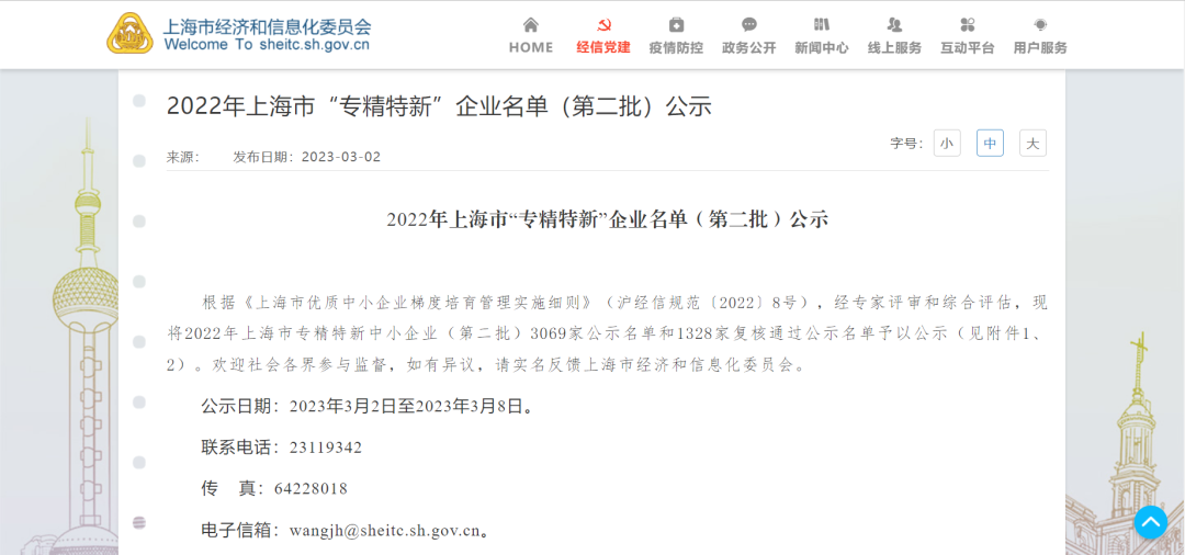 喜報|研究院榮獲2022年上海市“專精特新”企業(yè)稱號